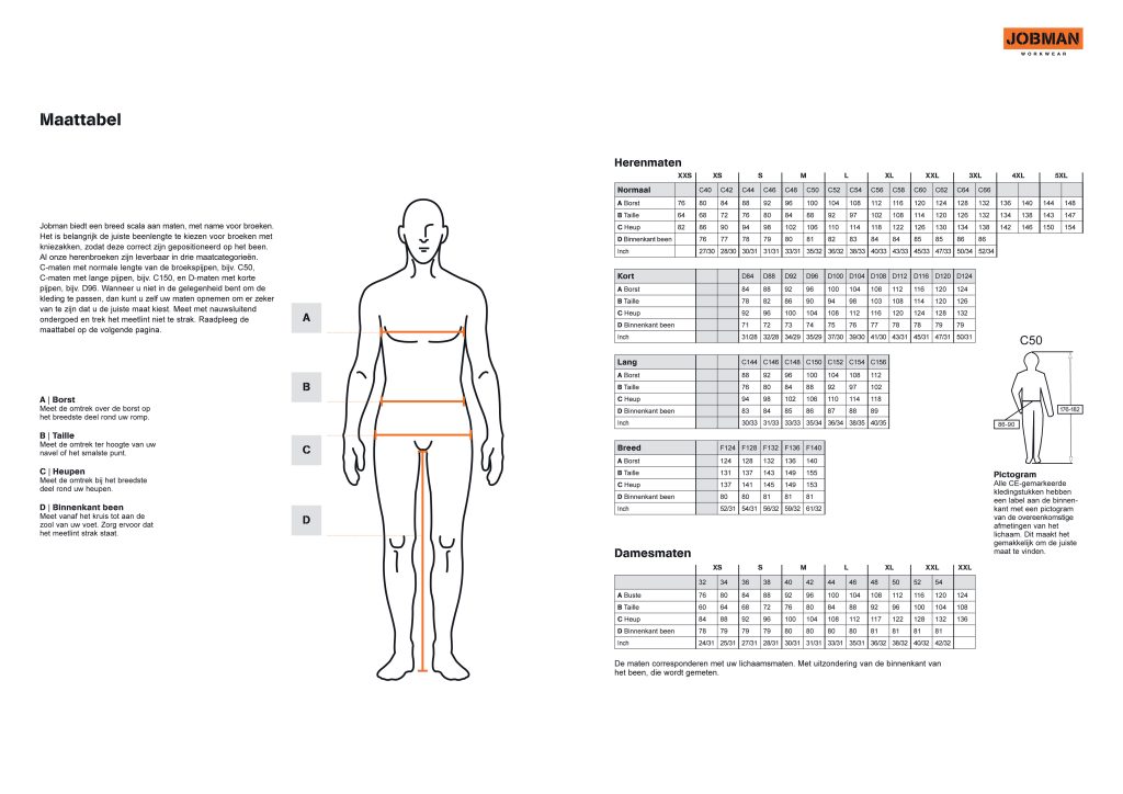 De onderstaande maattabellen zijn algemene richtlijnen van de fabrikant. Er kunnen altijd kleine verschillen zijn per artikel of merk. Wij zijn niet aansprakelijk voor eventuele afwijkingen of verkeerde maatkeuzes op basis van deze tabellen.