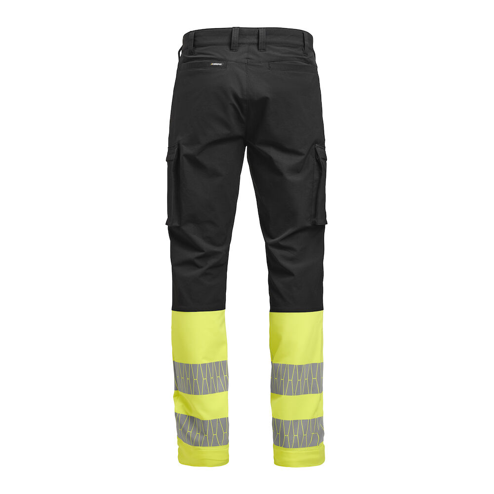 Service broek van stretchmateriaal, EN 20471 klasse 1 gecertificeerd. Gebaseerd op stretchbroek type 2318. Voorzien van ruime voorzakken en achterzakken met paspels. De beenzakken zijn uitgerust met ritsen; in de rechterbeenzak bevindt zich een extra vak voor een mobiel en pennenvakjes. Ook verkrijgbaar in damesuitvoering, model 2329.