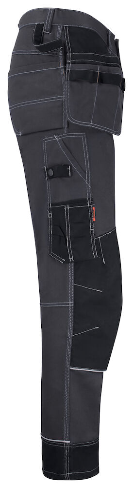 Functionele en duurzame werkbroek ontworpen voor intensief gebruik. Uitgevoerd met ruime steekzakken, holsterzakken, verstevigde achterzakken en een handige duimstokzak met mes-bevestigingsknoop. De beenzak met rits biedt plaats voor een telefoon en ID-kaart. Voorgevormde knieën zorgen voor een ergonomische pasvorm en optimale bewegingsvrijheid.