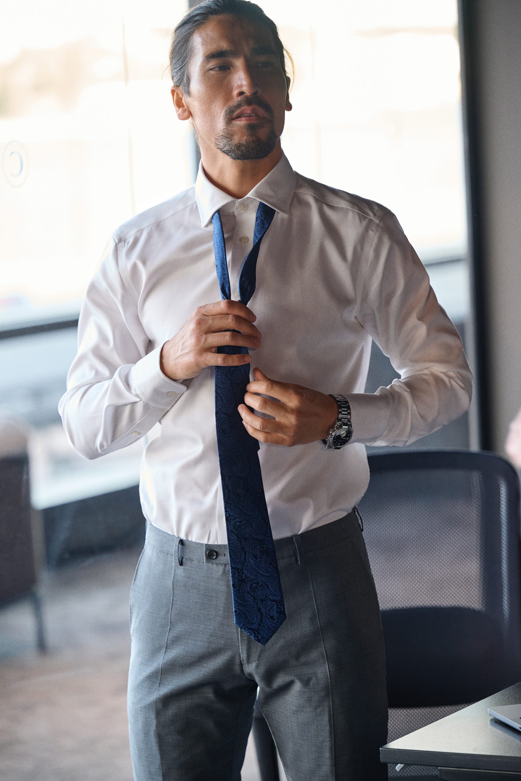 De mechanische stretch zorgt voor extra bewegingsvrijheid, terwijl de versterkte naden en het split yoke op de rug zorgen voor een scherpe, professionele pasvorm. Dit is hét overhemd voor wie comfort, duurzaamheid en een strakke uitstraling wil combineren.